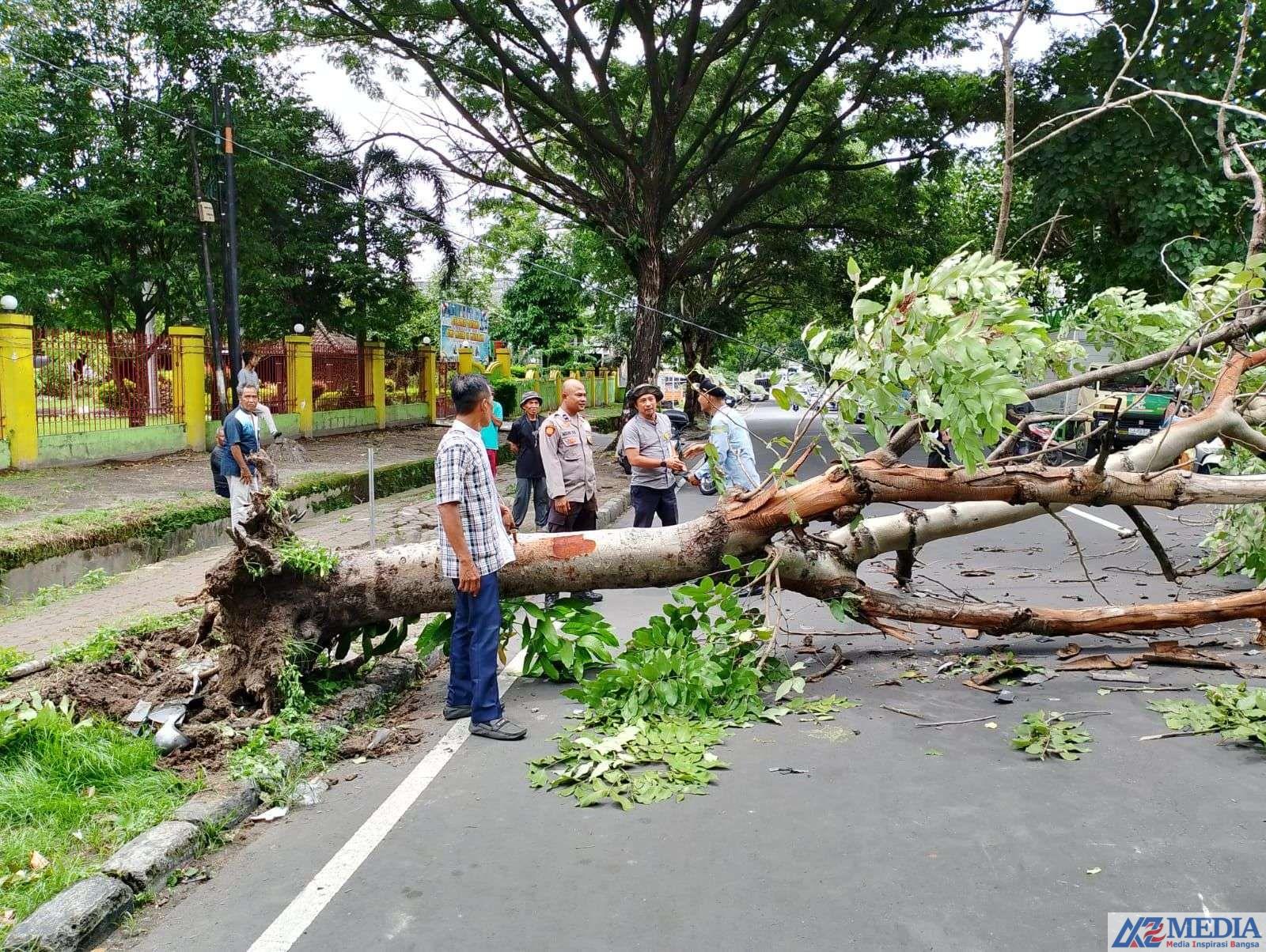 Rincinya, peristiwa pohon tumbang ini terjadi pertama kali pada pohon tepi jalan di Kecamatan Bandung, Tulungagung. Akibatnya akses jalan warga setempat sempat terkendala.