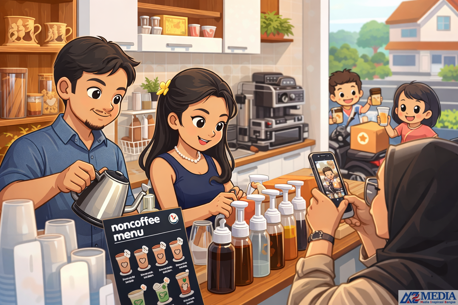 AZMEDIA— Sepasang suami-istri di Kota Blitar memilih jalan kreatif untuk menambah pemasukan keluarga. Bahtiar (31) bersama istrinya Nunik Yuliana (39) memanfaatkan ruang yang ada di rumah: dapur sederhana mereka di Perum Widuri, Kelurahan Tlumpu, Kecamatan Sukorejo disulap menjadi coffee shop rumahan yang melayani pesanan harian.