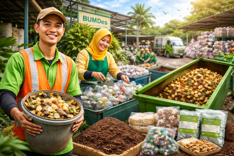 AZMEDIA — Di banyak wilayah, sampah masih dianggap urusan yang harus cepat disingkirkan: diangkut dari rumah, lalu berakhir di TPA. Praktiknya seolah selesai ketika truk pergi. Tetapi di Panggungharjo, Bantul—Yogyakarta, cara pikir itu dibalik. Sampah tidak disapu ke belakang layar, melainkan diperlakukan sebagai sumber daya: dipilah sejak awal, diproses dengan sistem, dan diubah menjadi nilai ekonomi yang dapat dirasakan warga.
