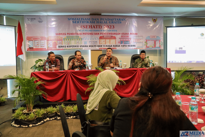 Tulungagung,AZMEDIA.CO.ID-Dalam rangka meningkatkan kualitas produk serta mendorong percepatan program sertifikasi halal, Pemerintah Kota Kediri melalui Dinkop UMTK menyelenggarakan sosialisasi dan pendaftaran Sertifikasi Halal Gratis (Sehati) Tahap II, Kamis (23/11) di salah satu hotel Kota Kediri.