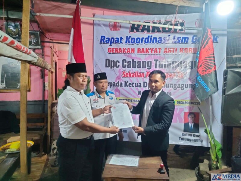 Tulungagung, AZMEDIA.CO.ID – Dalam upaya memperluas jaringan dan memperkuat struktur organisasinya, Dewan Pimpinan Pusat (DPP) LSM GERAK (Gerakan Rakyat Anti Korupsi) secara resmi menetapkan kepengurusan Dewan Pimpinan Cabang (DPC) di wilayah Kabupaten Tulungagung, Jawa Timur. Penyerahan Surat Keputusan (SK) pengangkatan dilakukan dalam sebuah acara yang digelar pada Sabtu, 3 Mei 2025, dan dihadiri oleh berbagai pihak penting dalam lingkungan organisasi.