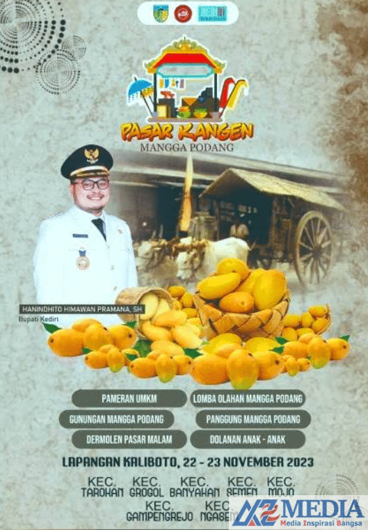 AZmedia.co.id KEDIRI Pemerintah Kabupaten Kediri melalui Dinas Koperasi dan Usaha Mikro menggelar Pasar Kangen Mangga Podang. Bertempat di Lapangan Desa Kaliboto Kecamatan Tarokan, Rabu Pagi (22/11/2023). Acara diawali dengan Lomba Cipta Kreasi Olahan Mangga Podang Khas Kediri. yang Diikuti oleh 7 peserta dari yakni peserta dari Kecamatan Ngasem,kecamatan Semen, kecamatan Banyakan, kecamatan Gampengrejo, kecamatan Tarokan, Grogol dan Mojo.