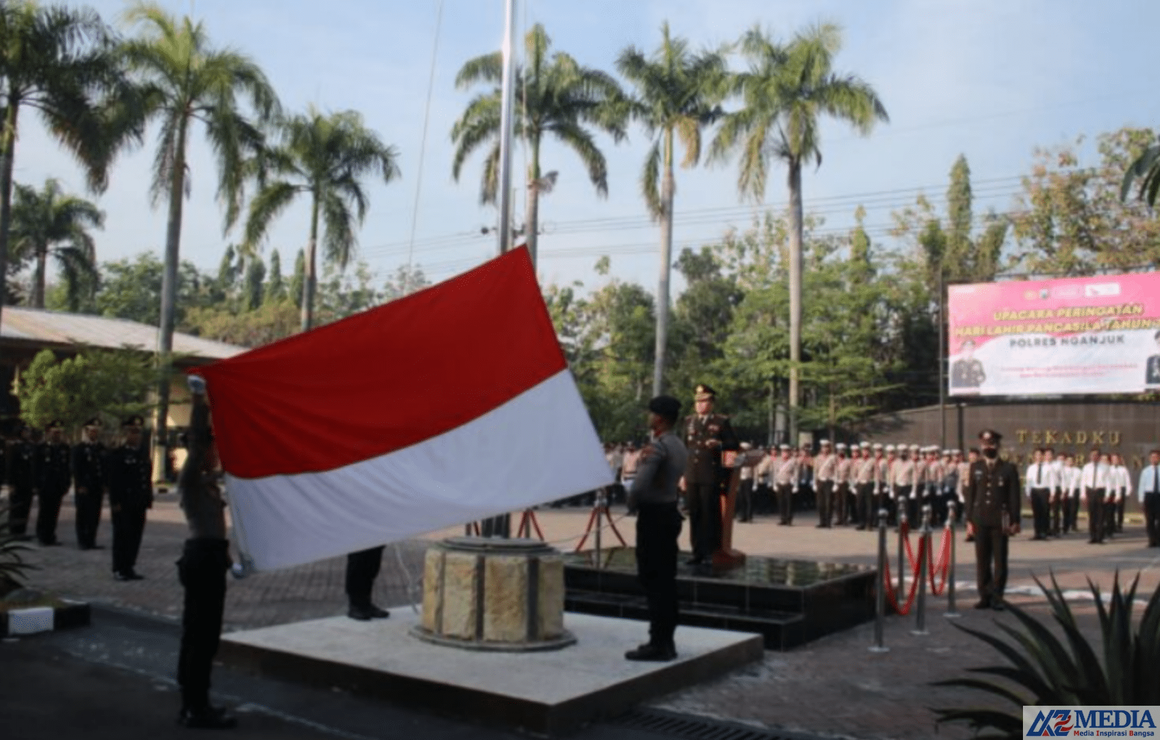 NGANJUK –AZMedia.co.id. Upacara Bendera dalam rangka memperingati Hari Lahir Pancasila Tahun 2023 Polres Nganjuk dilaksanakan pada Hari Kamis (01/06/2023) di Lapangan Apel ,
