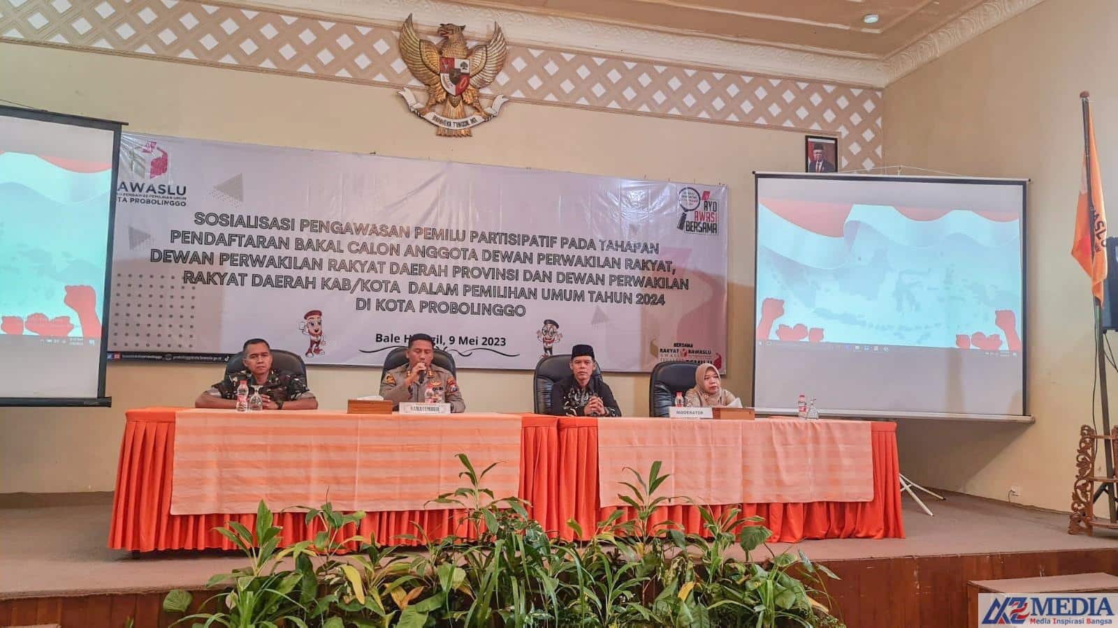 AZmedia.Probolinggo kota.Jelang tahapan pendaftaran bakal calon legislative dalam Pemilihan Umum tahun 2024 di Kota Probolinggo, Bawaslu Kota Probolinggo menggelar sosialisasi pengawasan pemilu partisipatif.
