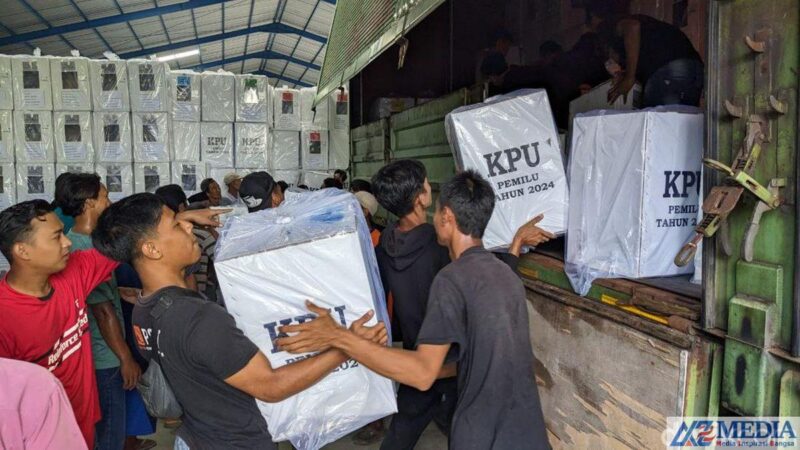 Tulungagung,AZMEDIA.CO.ID-Pencoblosan Pemilu 2024 tinggal menghitung hari, Komisi Pemilihan Umum (KPU) Tulungagung mulai mendistribusikan logistik ke masing-masing kecamatan. Total armada yang dikerahkan ada 28 truk besar dari PT Pos Indonesia.