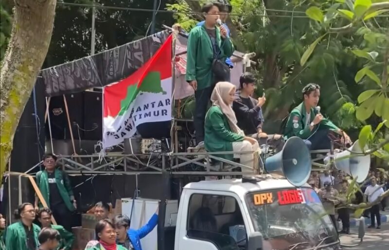 TULUNGAGUNG, AZMEDIA.CO.ID – Aliansi Badan Eksekutif Mahasiswa (BEM) Tulungagung menggelar aksi demonstrasi di depan Kantor DPRD Tulungagung pada Senin (29/9/2025). Dalam aksi tersebut, mahasiswa menyuarakan tiga tuntutan utama yang menyoroti isu pendidikan hingga jaminan kebebasan berpendapat.