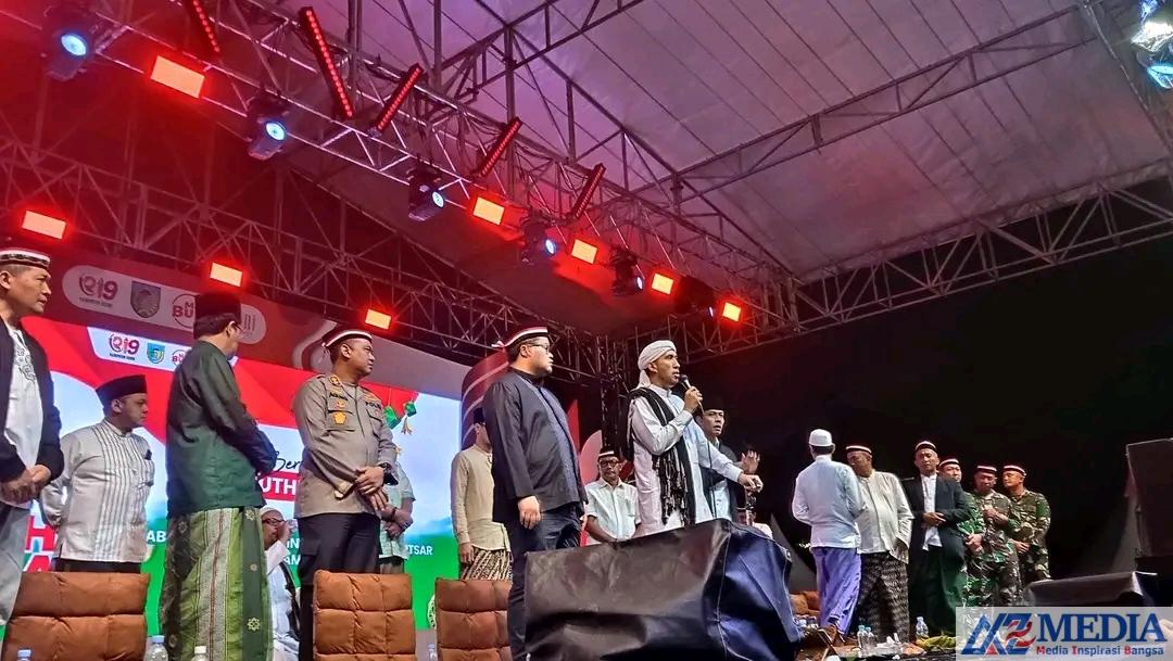 kediri AZMedia.co.ib Alim ulama dan umaro bersatu dalam sholawat dan mendengarkan Tausiyah kebangsaan di kawasan monumen SLG Kabupaten Kediri, Jumat malam.