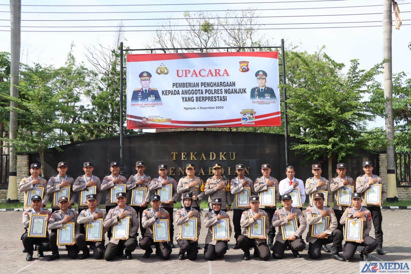 AZMEDIA INDONESIA co.id. kapolres Nganjuk AKBP Muhammad, S.H., S.I.K., M.Si., memberikan piagam penghargaan kepada 23 anggota terdiri dari 3 staf…