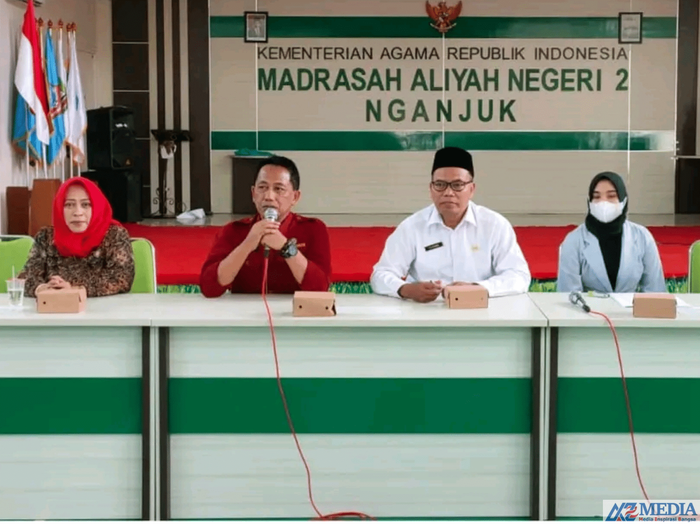 Ini adalah wujud komitmen Pemkab Nganjuk dan bapak Bupati dalam mewujudkan SDM berkualitas di Nganjuk. Pesan beliau, di Kabupaten Nganjuk tidak boleh ada anak yang tidak sekolah. Apalagi karena terkendala biaya. Semoga bantuan ini bisa bermanfaat bagi adik-adik semua,” tutur Nafhan saat menyerahkan BSM kepada siswa MA di Aula MAN 2 Nganjuk.