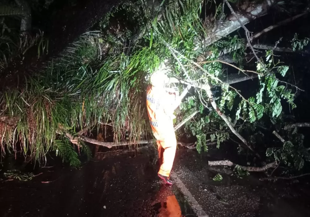 Diketahui tumbangnya pohon tepi jalan ini membuat akses di wilayah tersebut lumpuh total.
