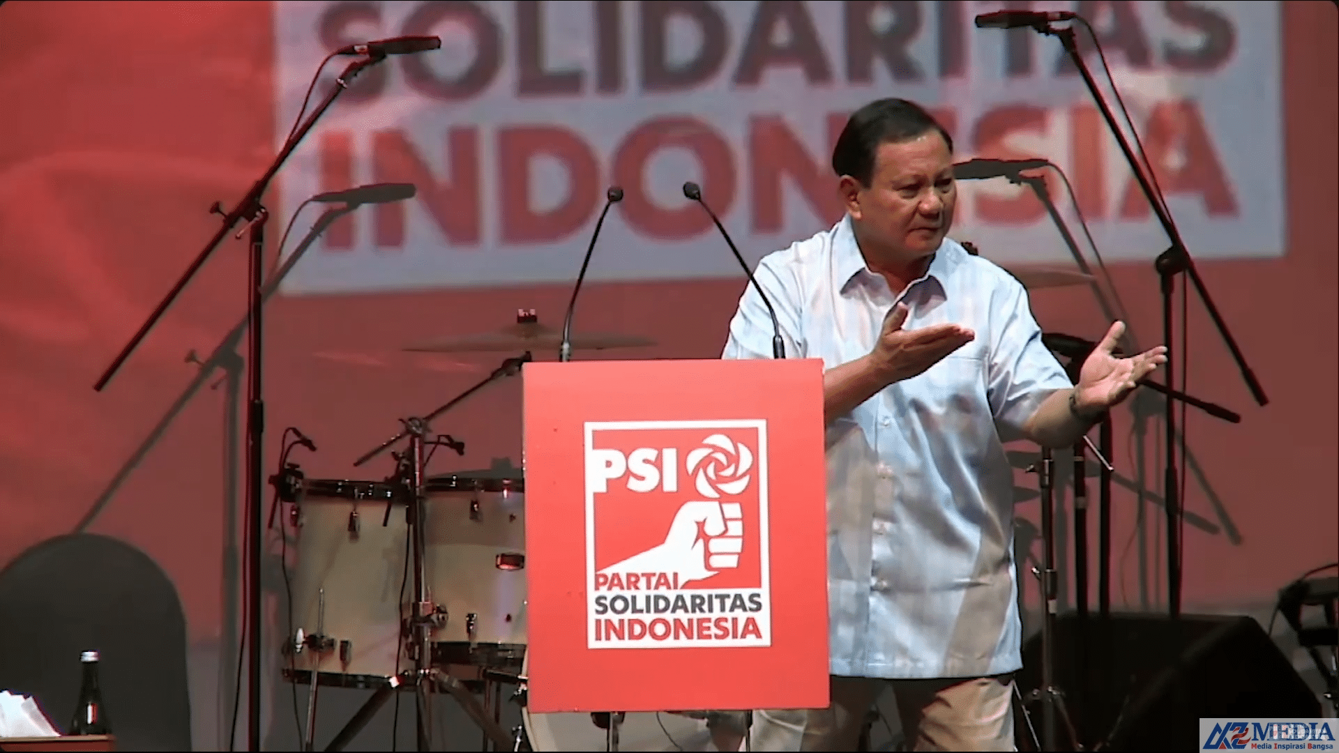“PSI banyak happy-nya. Agak rileks, banyak anak mudanya,” ujar Prabowo saat menghadiri deklarasi PSI di Djakarta Theatre, Jakarta, Selasa (23/10).