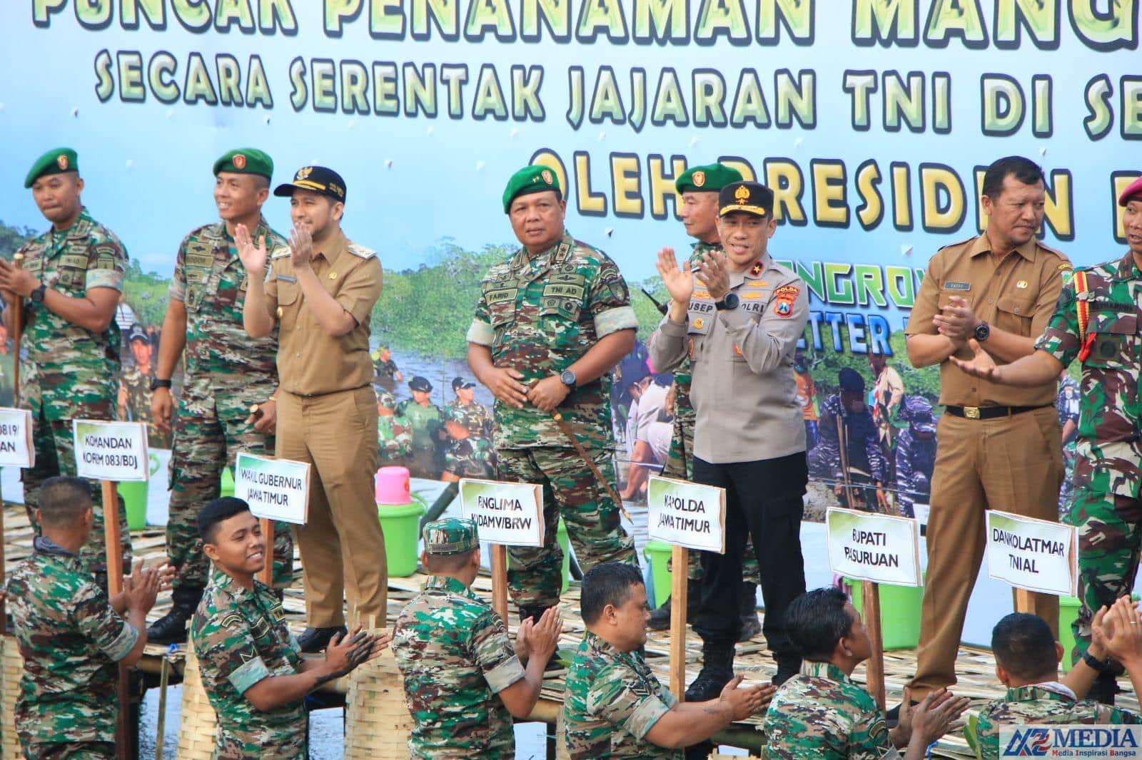 PASURUAN –AZMEDIA.CO.ID. Puncak penanaman Mangrove Nasional secara serentak di seluruh Indonesia yang dipimpin oleh Presiden RI, Ir Joko Widodo juga diikuti oleh Forkopimda Jawa Timur.